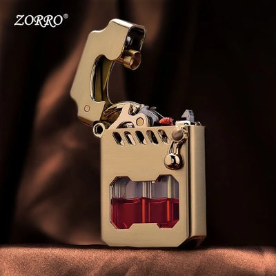 Zorro Original Copper Light Plate Gold Brushed Pure Copper Lighter Windproof Kerosene Lighter Narrow Machine Men's Cool Lighter