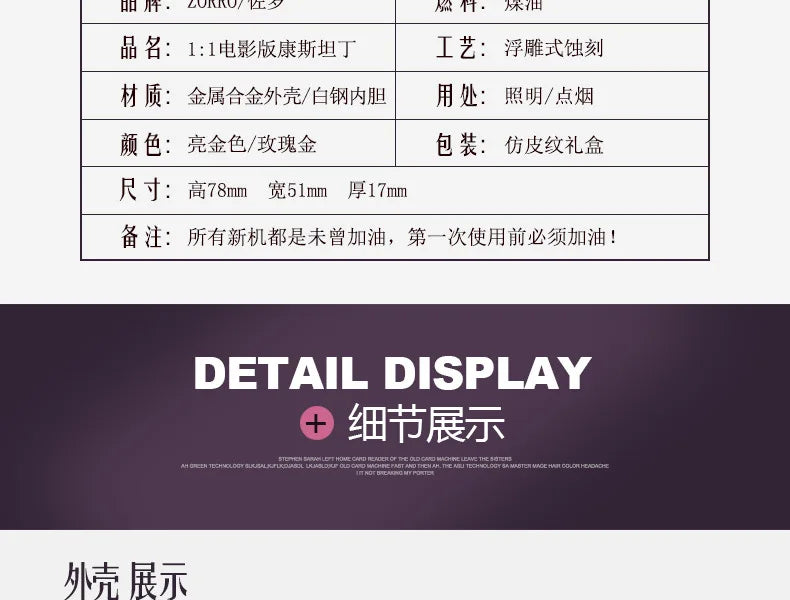 1:1 Limited Edition ZORRO Oversized Kerosene Lighter Metal Personality Constantine Creative Heavy Armor Oversized Lighter Gift