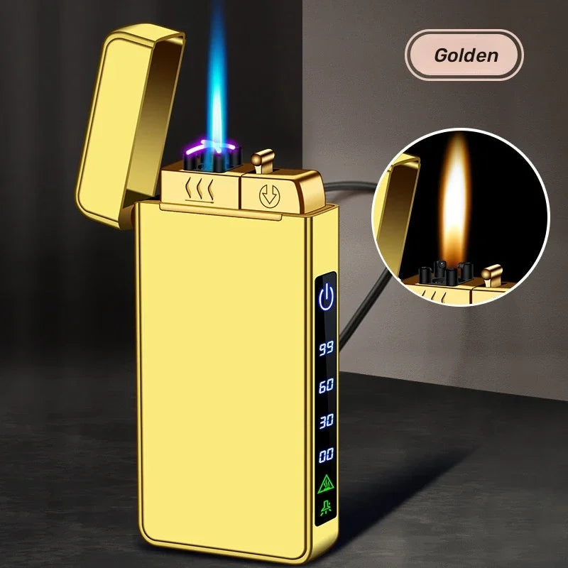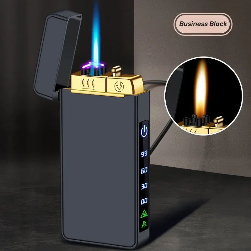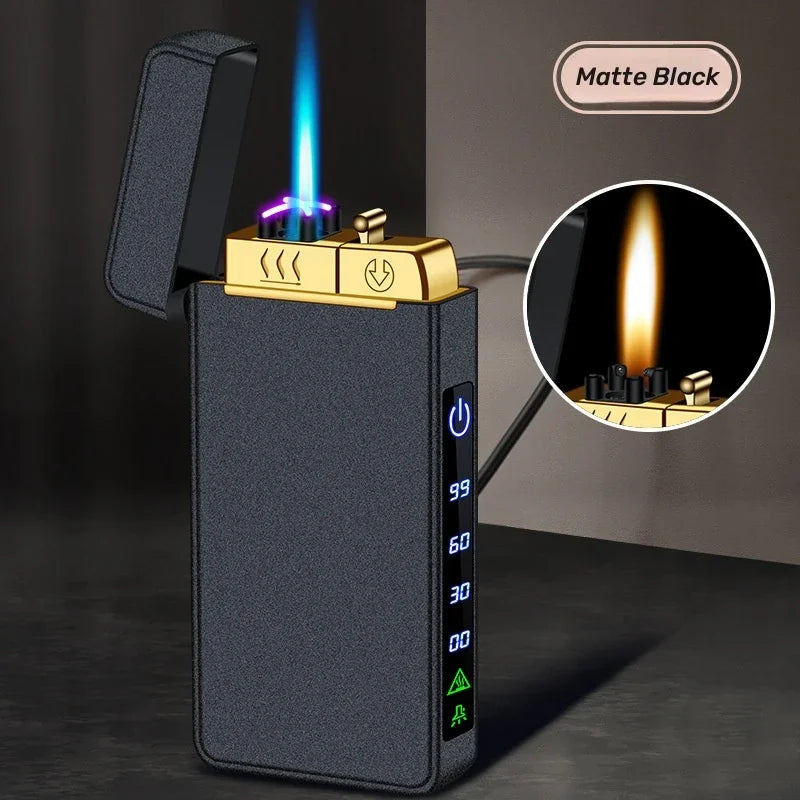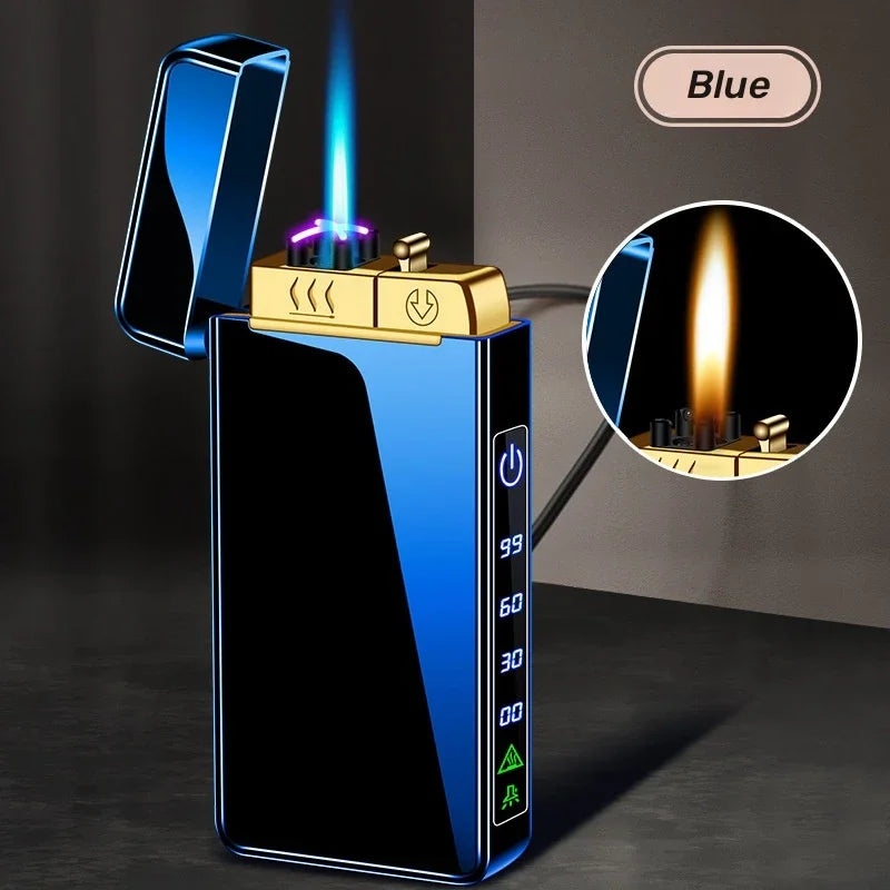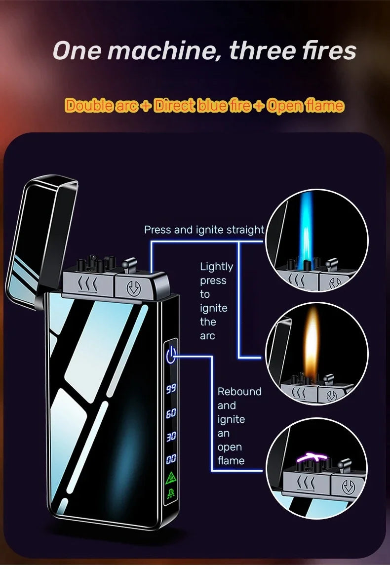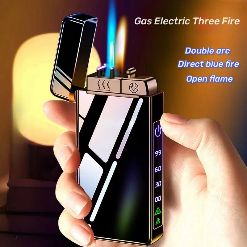 Triple Flame Electric Pulse Plasma Dual Arc Type-C Lighter Metal Outdoor Windproof Blue Red Flame Torch Jet Lighter Men&