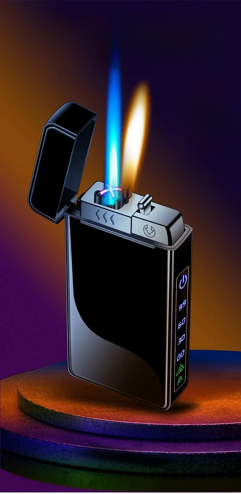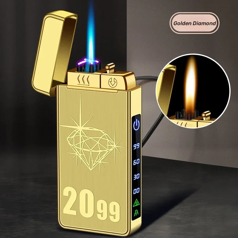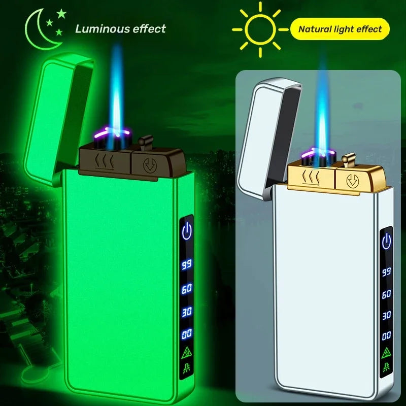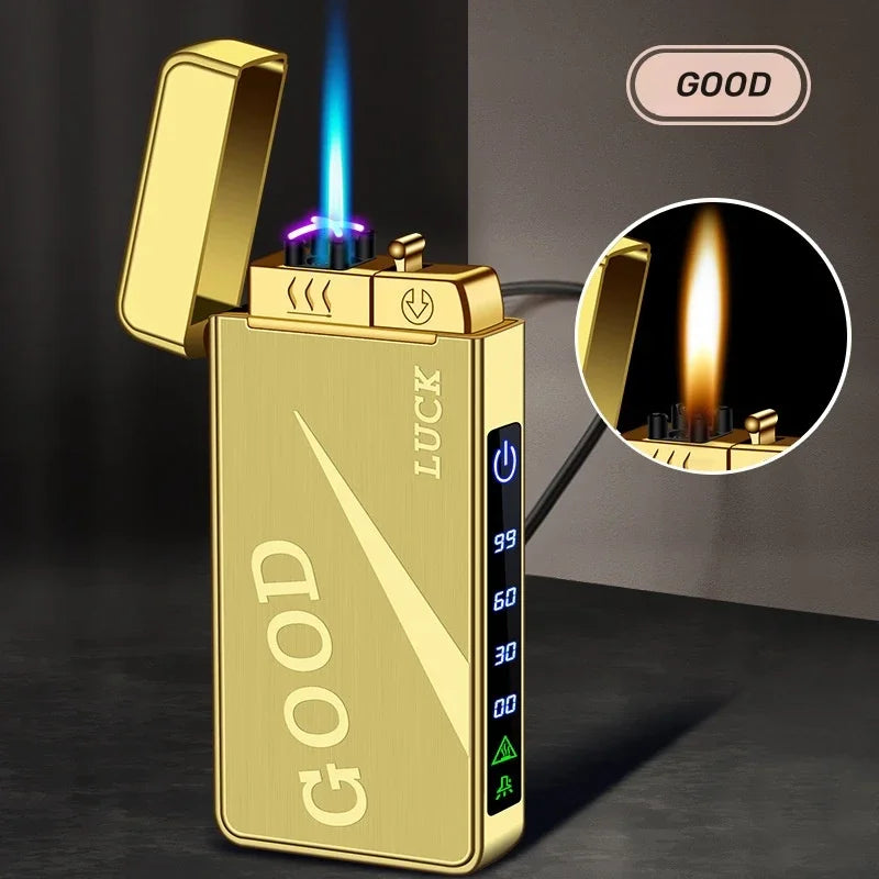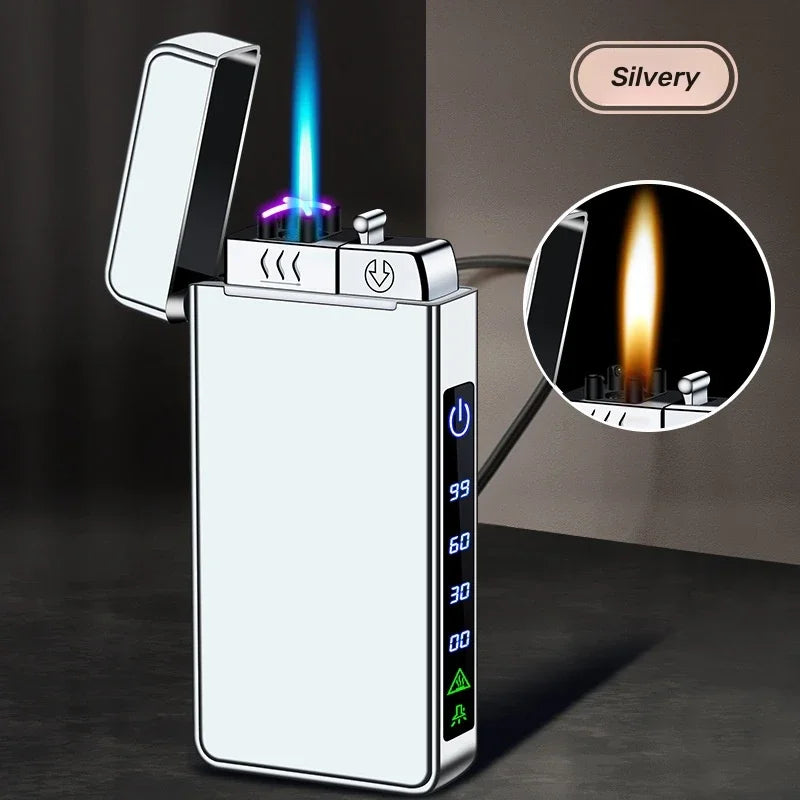 Triple Flame Electric Pulse Plasma Dual Arc Type-C Lighter Metal Outdoor Windproof Blue Red Flame Torch Jet Lighter Men&