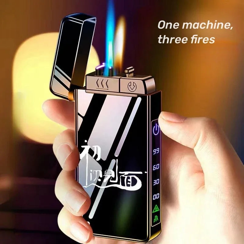 Triple Flame Electric Pulse Plasma Dual Arc Type-C Lighter Metal Outdoor Windproof Blue Red Flame Torch Jet Lighter Men's Gift