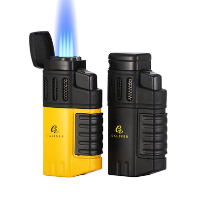 GALINER Metal Cigar Lighter Gas Butane Portable Windproof 4 Jet Torch Lighters Pocket Smoking Cigar Burner Isqueiro