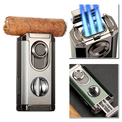 GALINER Cigar Lighter Metal Butane Gas Torch Jet Flame Lighters With Cigar V Cutter Portable Holder Cigar Support