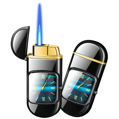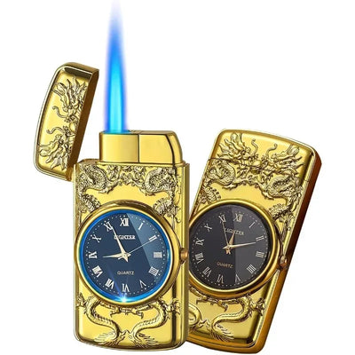 Torch Lighter, Jet Flame Butane Lighters, Design Refillable Gas Lighter with Clock Dialr(Without Butane) (Gold)