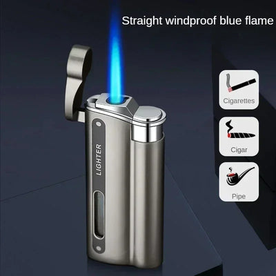2025 Metal Windproof Pendant Lighter Outdoor Portable Spray Blue Flame Torch Inflatable Lighter Cigarette Accessories Men's Gift